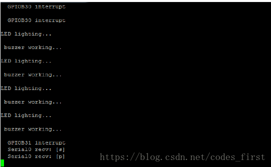 2:通过print 将“LED Lighting” 和”buzzer working” 输出到串口