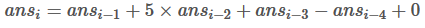 然后觉得有一个边长是常数4,就写了五层for循环确定ans[i]与前四项和一个常数之间的系数关系,得到: