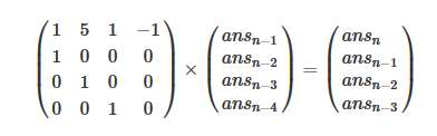然后因为需要前四项,所有可以从第五项开始算,前四项直接输出,但是博客中构造了一个神奇的矩阵