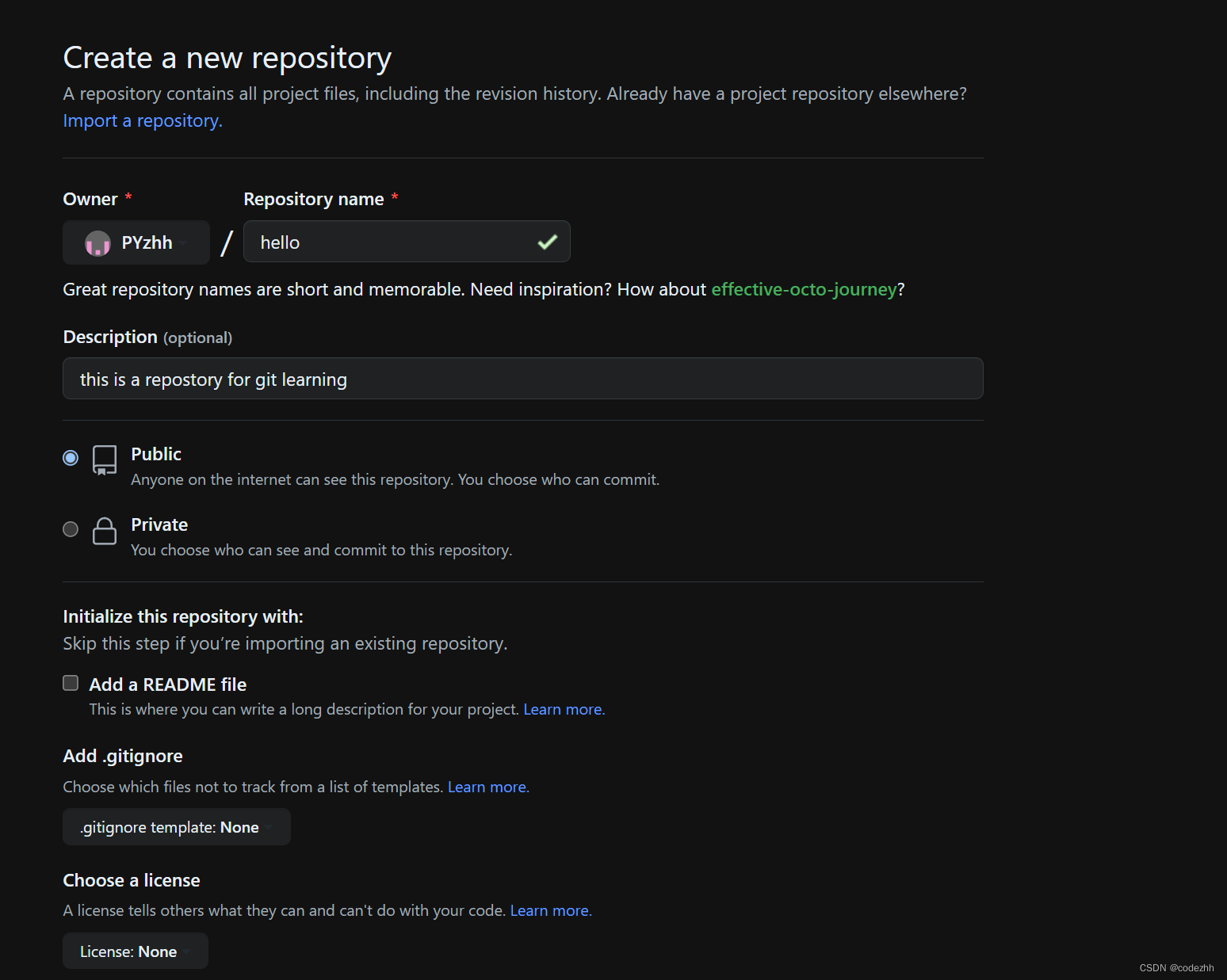 可以选择公开或者私有