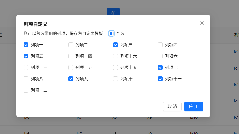 这个时候可以采用配置Table表格的列来实现优化。默认展示重要的信息,其他相对不是那么重要的信息就可以根据不同的用户,由用户自行配置显示。