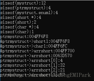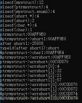 第一个疑问与设想的一样,short数组中的每个short占用new出来的2byte,arrshort这个short指针变量的值是该数组首元素的地址,而arrshort的地址在mystruct开辟的12byte空间中的最后4byte。