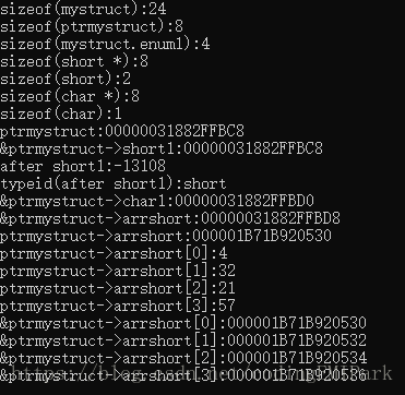 cout << "ptrmystruct->short1:" << ptrmystruct->short1 << endl;