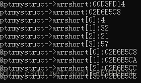 cout << "ptrmystruct->arrshort:" << ptrmystruct->arrshort << endl;