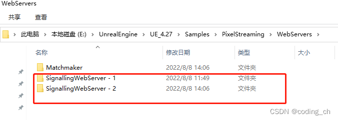 3.启动像素流服务器,初始化只有一个服务器文件,但其后果就是多人访问时项目时会互相影响,因此可复制多个服务器,应对多人访问的情况,如下图