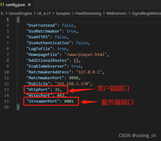 需要配置启动项,例:”-AudioMixer -PixelStreamingIP=localhost -PixelStreamingPort=8001”,PixelStreamingPort像素流端口需要跟第三步在config文件里的StreamerPort的端口一样,
