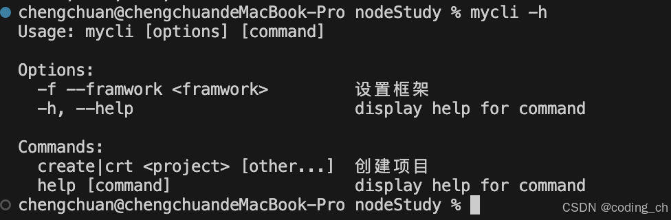 .description('创建项目') // description 用来描述作用,会展示在--help的指令中