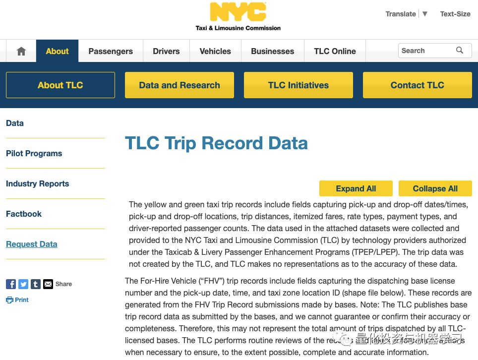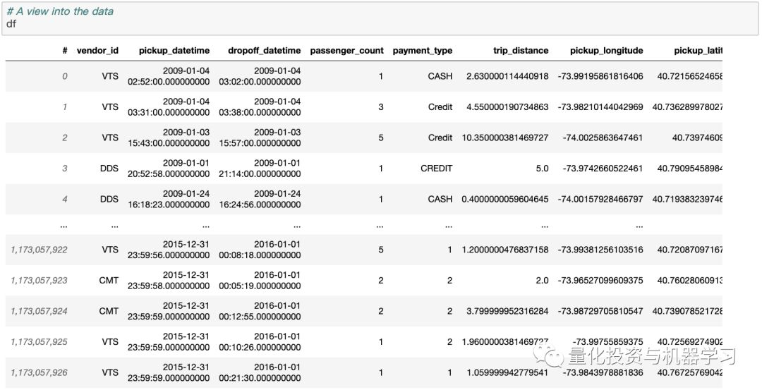 我们使用纽约市出租车的数据集,该数据集包含了出租车在2009年至2015年间超过10亿次出租车出行的信息。数据可从下面的网站下载,并以 CSV 格式提供: