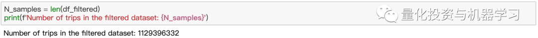 最后,在所有初始数据清理之后,让我们看看还剩下多少出租车次数供我们分析: