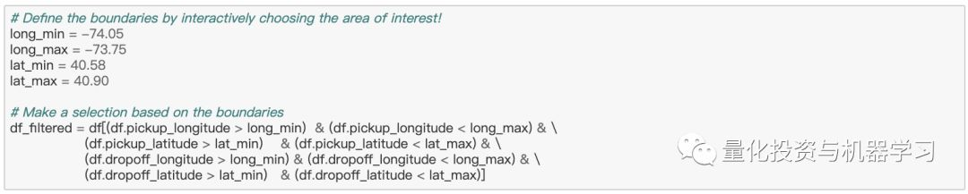 一旦我们决定了想要关注纽约的哪个区域,我们就可以简单地创建一个过滤后的 DataFrame: