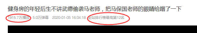 比如2020年一月份,右眼被蹭了一下的马老师面带微笑,为我们生动形象地讲述了健身房里的年轻人是如何不讲武德,偷袭他的故事。