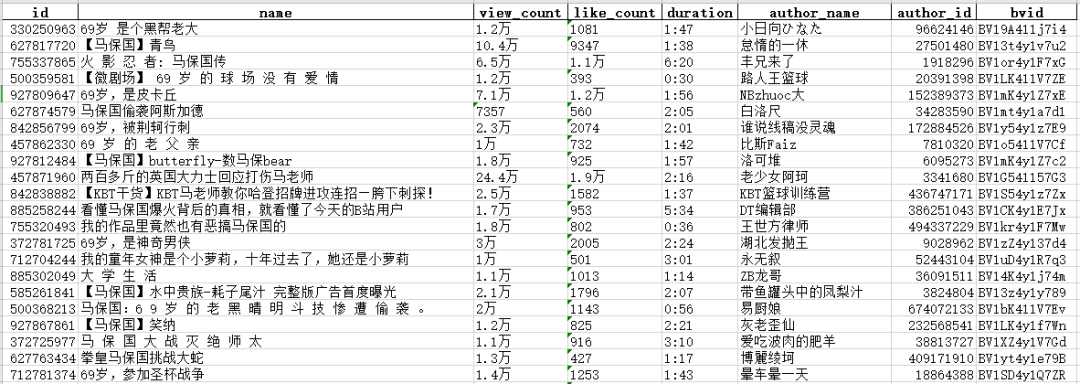 很快啊,很快就爬取了1.4万条马保国先生的视频数据。