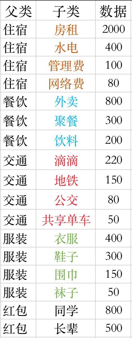 Peter同学一个人在深圳搬砖,辛辛苦苦地搬了一个月,产生很多的开销????,这些开支主要分成5大块: