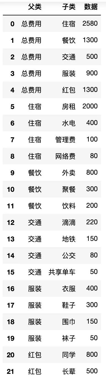 首先我们将上面制作好的开支这份数据读到pandas中: