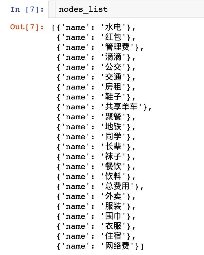 {'nodes': [{'name': '围巾'}, # 节点部分数据