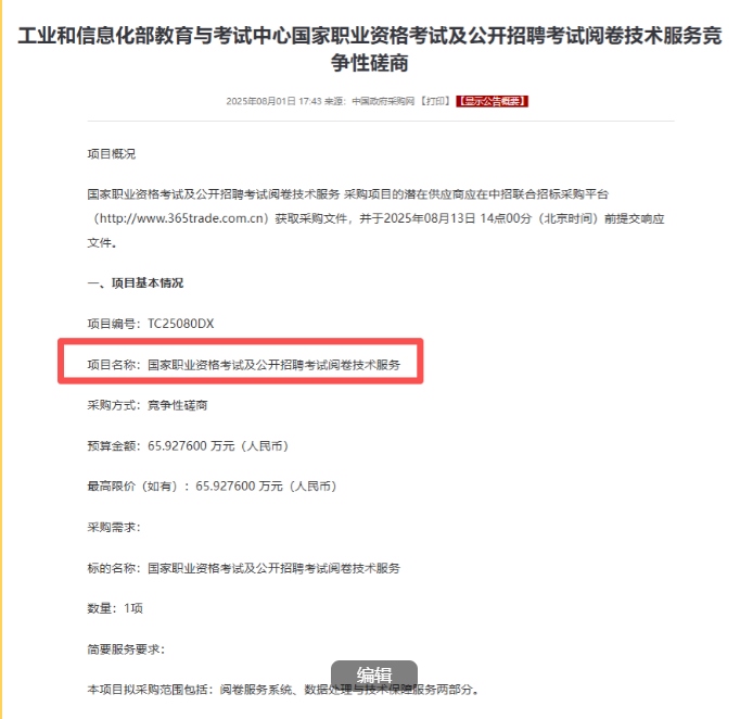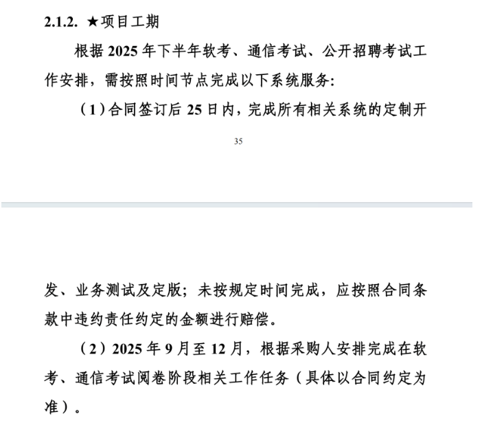 根据“项目工期”要求,相关系统定制开发与测试将于合同签订后25日内完成,并计划于2025年9月至12月正式投入软考、通信考试阅卷工作(条款2.1.2)。这意味着,即将参加2025年下半年软考的考生,将成为首批体验此次AI赋能阅卷变革的群体。