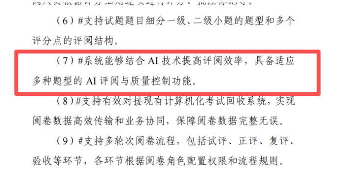 根据工业和信息化部教育与考试中心8月发布的《国家职业资格考试及公开招聘考试阅卷技术服务竞争性磋商公告》及相关采购文件,人工智能技术在阅卷环节的深入应用已明确成为下一阶段软考阅卷工作的核心发展方向。文件包含了AI技术应用的方向,更设定了明确的时间表,标志着AI阅卷正从概念探讨步入规模化、规范化应用的新阶段。这一技术革新不仅是效率工具的应用,更是对现有阅卷模式的系统性升级,旨在通过技术手段弥合传统人工阅卷中难以完全避免的局限,从而在根本上提升考试评价的公平性、一致性与公信力。
