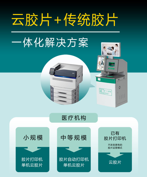 而OKI所有的医疗行业打印机,都可以实现云胶片打印的无缝连接。这样,患者不但可以拿到握在手里才踏实的传统胶片,还可以在方便地在云端随时查看自己的片子,两全其美。