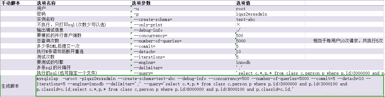 本文的测试excel,可以在优快云下载,搜索:mysqlslap 性能测试脚本自动生成测试性能.xlsx