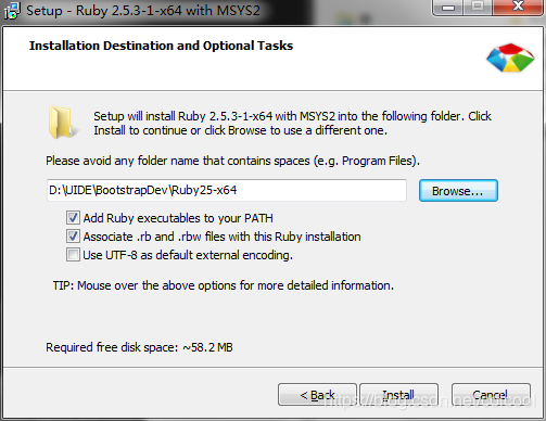 D:\UIDE\BootstrapDev\Ruby25-x64 Ruby所在目录
