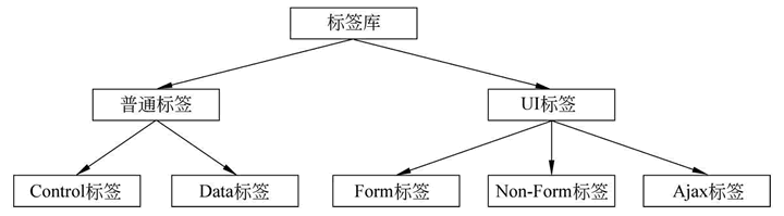UI 标签又分为表单标签(Form Tags)、非表单标签(Non-Form Tags)和 Ajax 标签。表单标签主要用于生成 HTML 页面中的表单元素,非表单标签主要用于生成非表单的可视化元素,如输出 Action 中封装的信息等。Ajax 标签主要用于提供对 Ajax 技术的支持。