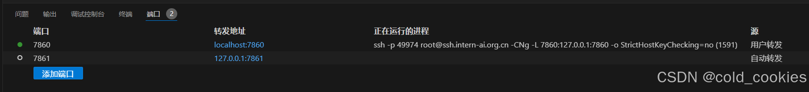 在VSCode中进行端口映射后: