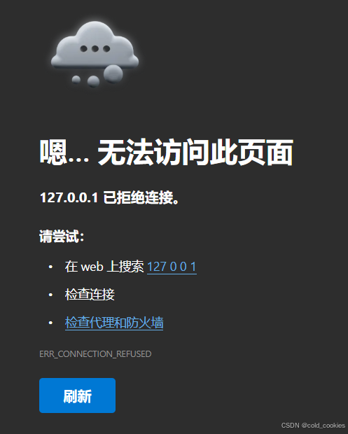 在未进行端口映射的时候访问127.0.0.1:端口号 ,会显示不能连接该端口