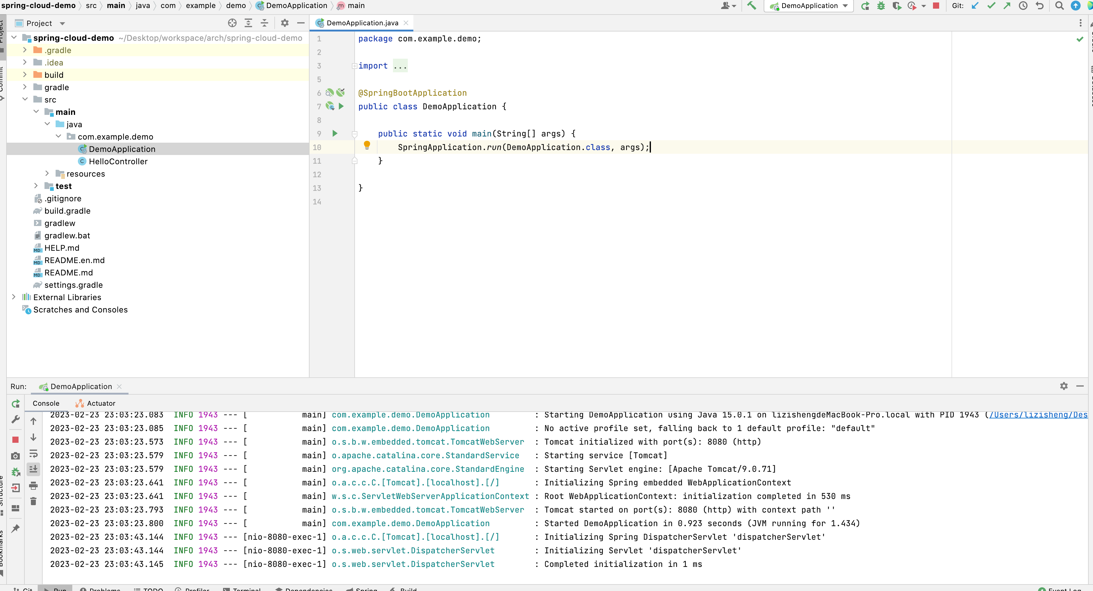 项目截图如下,运行DemoApplication,看到springboot启动成功