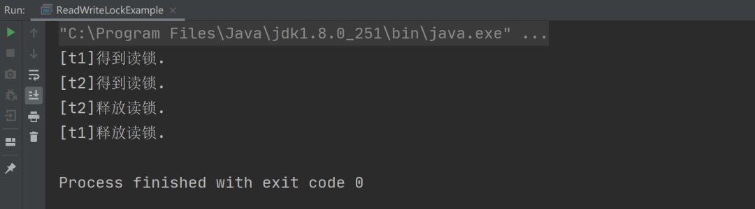 多个线程可以同时获取到读锁,称之为读读不互斥,如下代码所示: