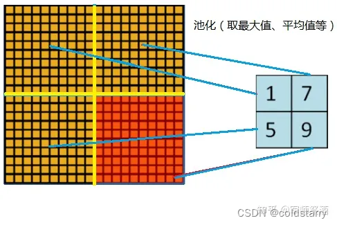 一般的池化(Pooling)是不重叠的,池化区域的窗口大小与步长相同,如下图所示: