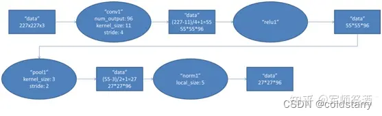该层的处理流程为:卷积 -->ReLU--> 池化 --> 归一化,流程图如下: