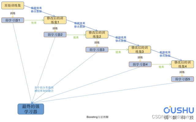 这意味着难以分类的样本会收到越来越大的权重,直到算法识别出正确分类这些样本的模型。