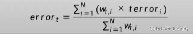 这是误分类率的加权和,w是训练实例i的权重,terror是训练实例i的预测误差,terror为1时是误分类,为0时是正确分类,sum是对N个实例的求和