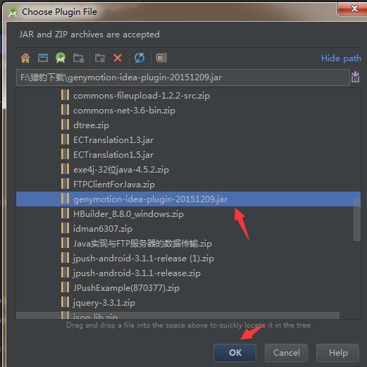 打开android stuido File ->settings ->plugins 会发现多了一个genymotion 点它,然后将你的genymotion安装路径添进去。再次重启。