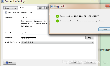 2、在开启认证模式之前先创建一个管理员账号,在客户端中创建myadmin角色