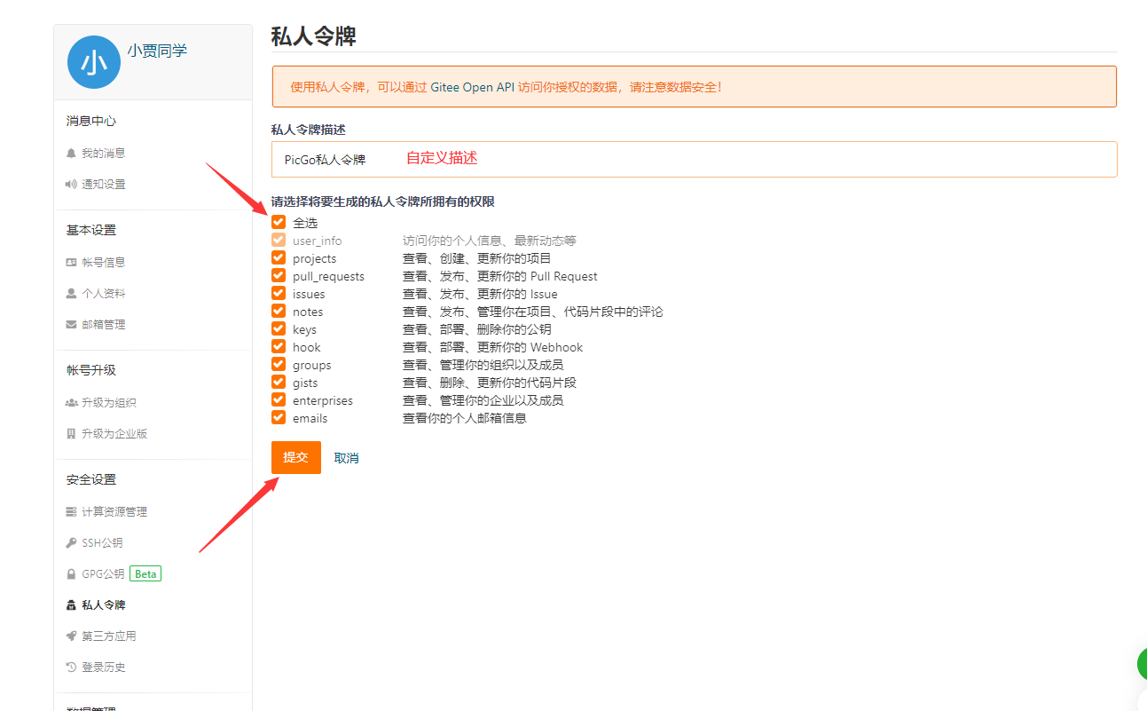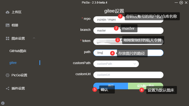 3.token:填入我们刚刚生成的私人令牌