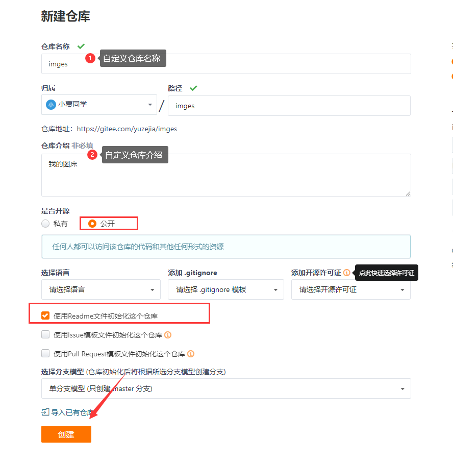 二、在码云上创建存放图片的仓库