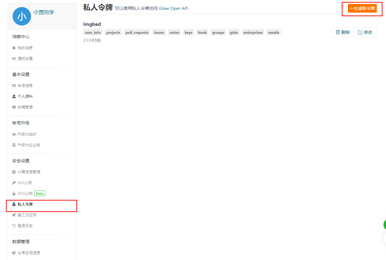 这样我们的私人令牌就生成好了,将我们的私人令牌复制下来