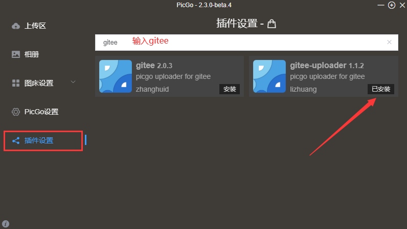选择插件设置—>输入gitee后,安装第二个插件