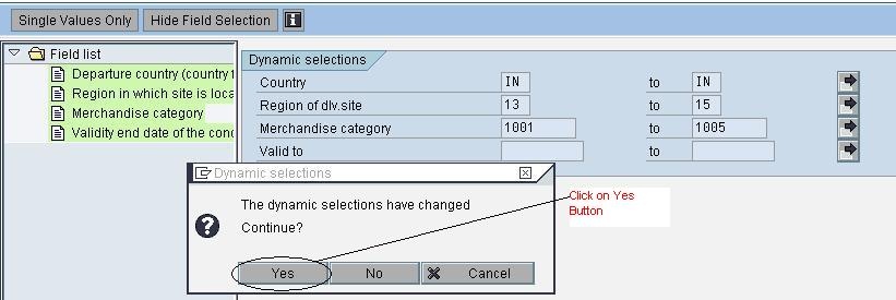 Initial Selection Screen will have the fields Application Area and Pricing Condition Type.