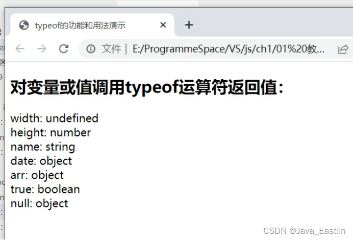 document.write("<h2>对变量或值调用typeof运算符返回值:</h2>");