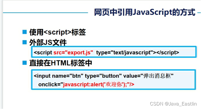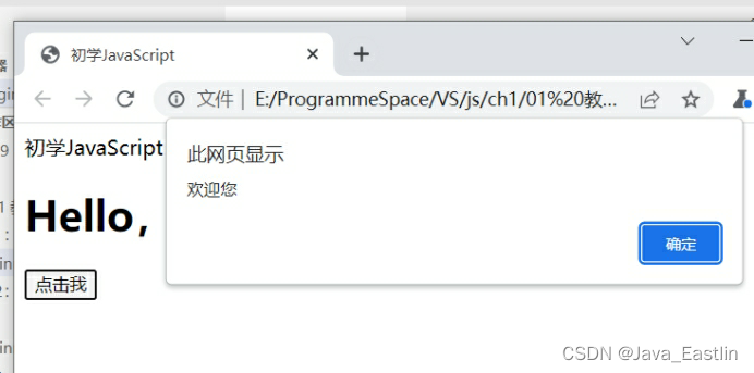 <input type="button" value="点击我" onclick="javascript:alert('欢迎您')"/>
