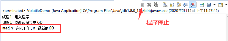 System.out.println(Thread.currentThread().getName()+" 完成工作,n 最新值" + myData.n);