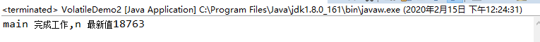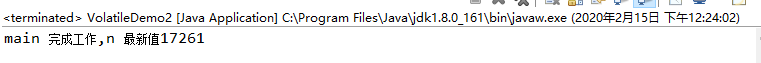 // 此时 n 已经加 volatile 关键字,但是 volatile 不保证原子性。