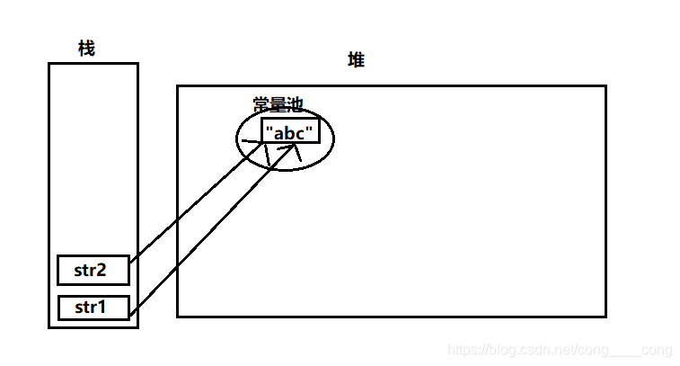 1. str1 和 str2 都是使用直接创建,所以str1 在字符串常量池中,str2 检测常量池中有"abc",所以直接指向常量池的字符串,所以答案是 true