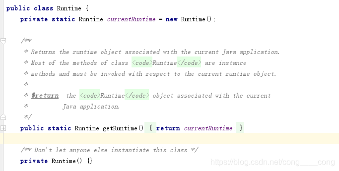 java中 Runtime 对象使用单例对象的饿汉式(静态常量)