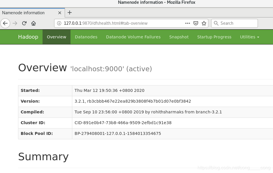 注意:Hadoop3以后将端口修改为9870,并非以前的50070.
