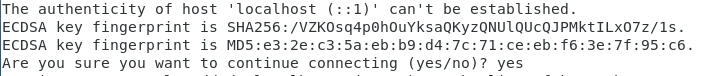 此时会有如下提示(SSH首次登陆提示),输入 yes 。然后按提示输入密码 hadoop,这样就登陆到本机了。