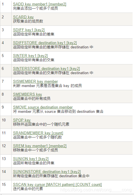 smembers key:输出集合中的全部元素 -