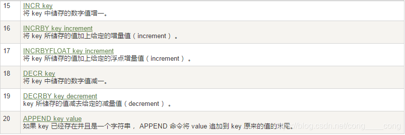 decr key:自减1,并返回值,非数字报错 -